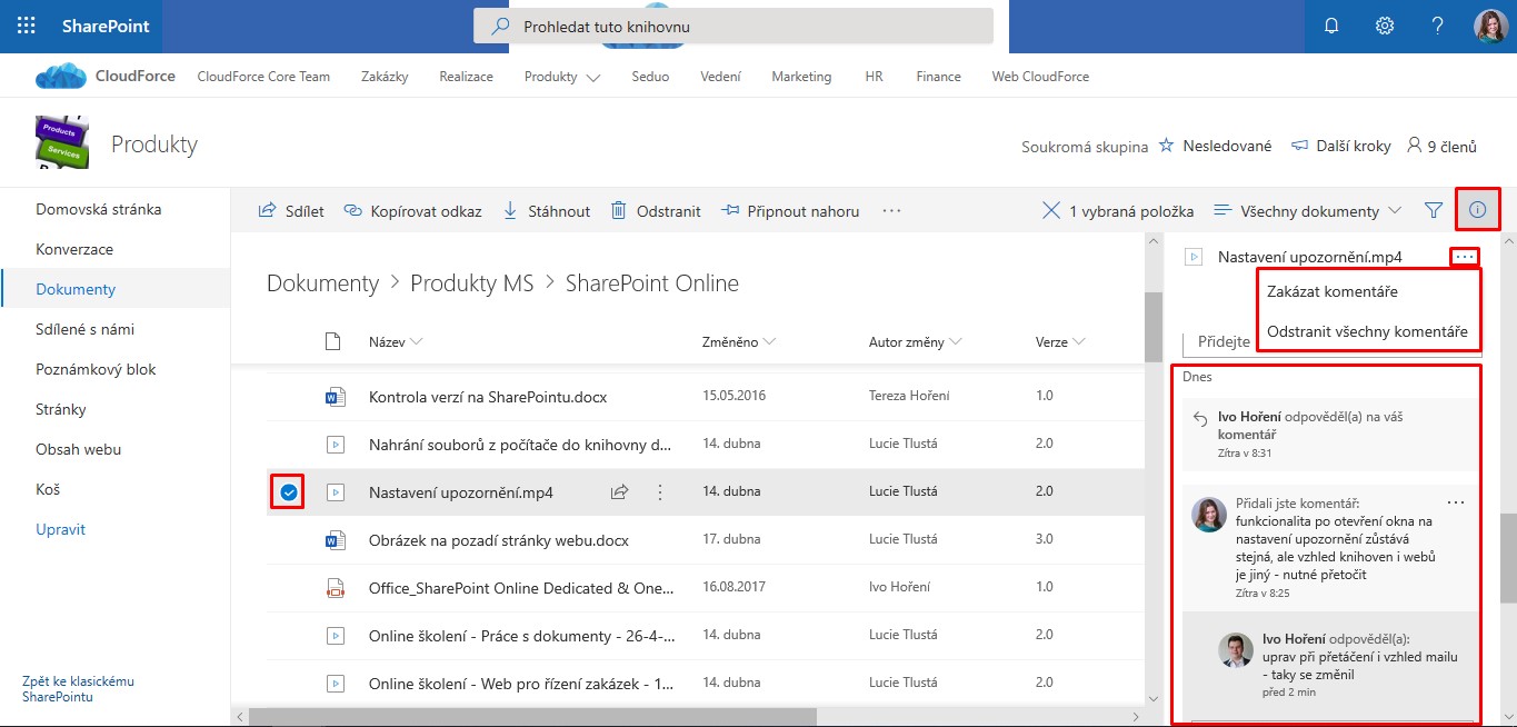Jste zvyklí při spolupráci na dokumentech používat komentáře a vyměňovat si tak s kolegy poznámky k úpravám? Pak tuto funkci určitě oceníte i u dalších typů souborů, třeba u videí, PDF nebo obrázků, kde nyní nově přibyla!